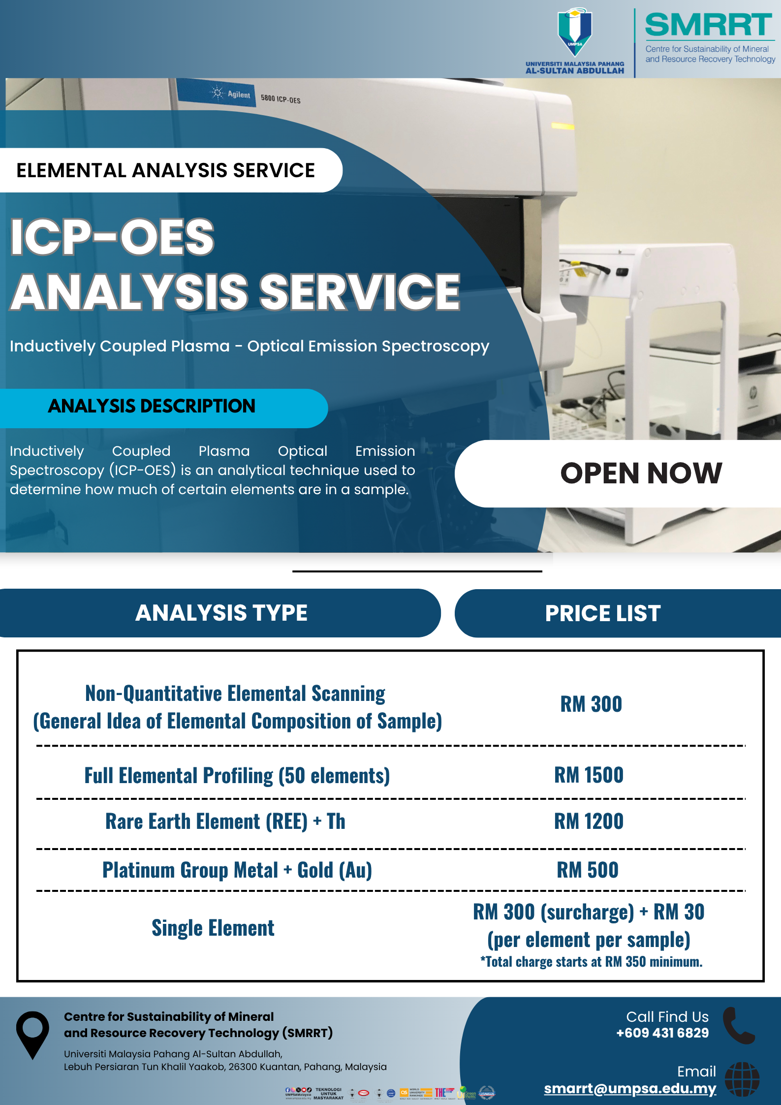 Sukacita dimaklumkan, Pusat SMaRRT kini menawarkan pemprofilan tanah menggunakan teknologi ICP-OES untuk membantu anda dalam penyelidikan, pertanian, dan pemantauan alam sekitar.